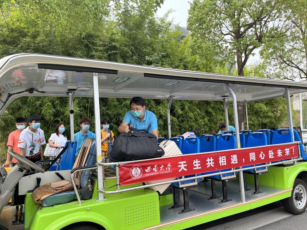 在三号门迎新现场,根据工作需要,志愿者被分配到不同的岗位,分别负责校门外引导和体温检测、入校通道流量控制和行李帮运、校门内核验两码一证明、指引各园区方向并协助行李转运、观光车行李搬运等工作,为新同学们提供最有力的安全保障。志愿者们热情搬运行李、指引方向、介绍园区,让新同学入校即感受到暖心关怀和周到服务。
