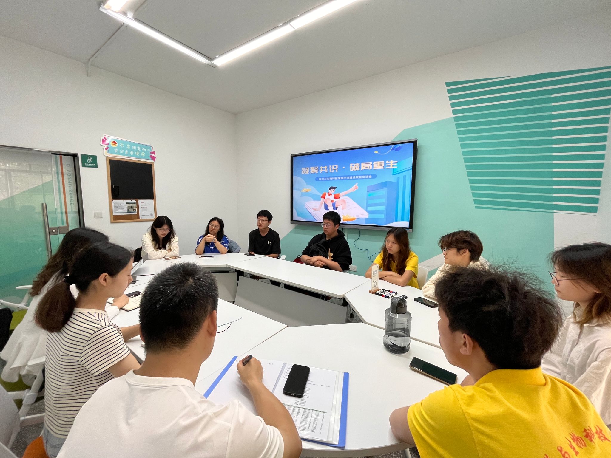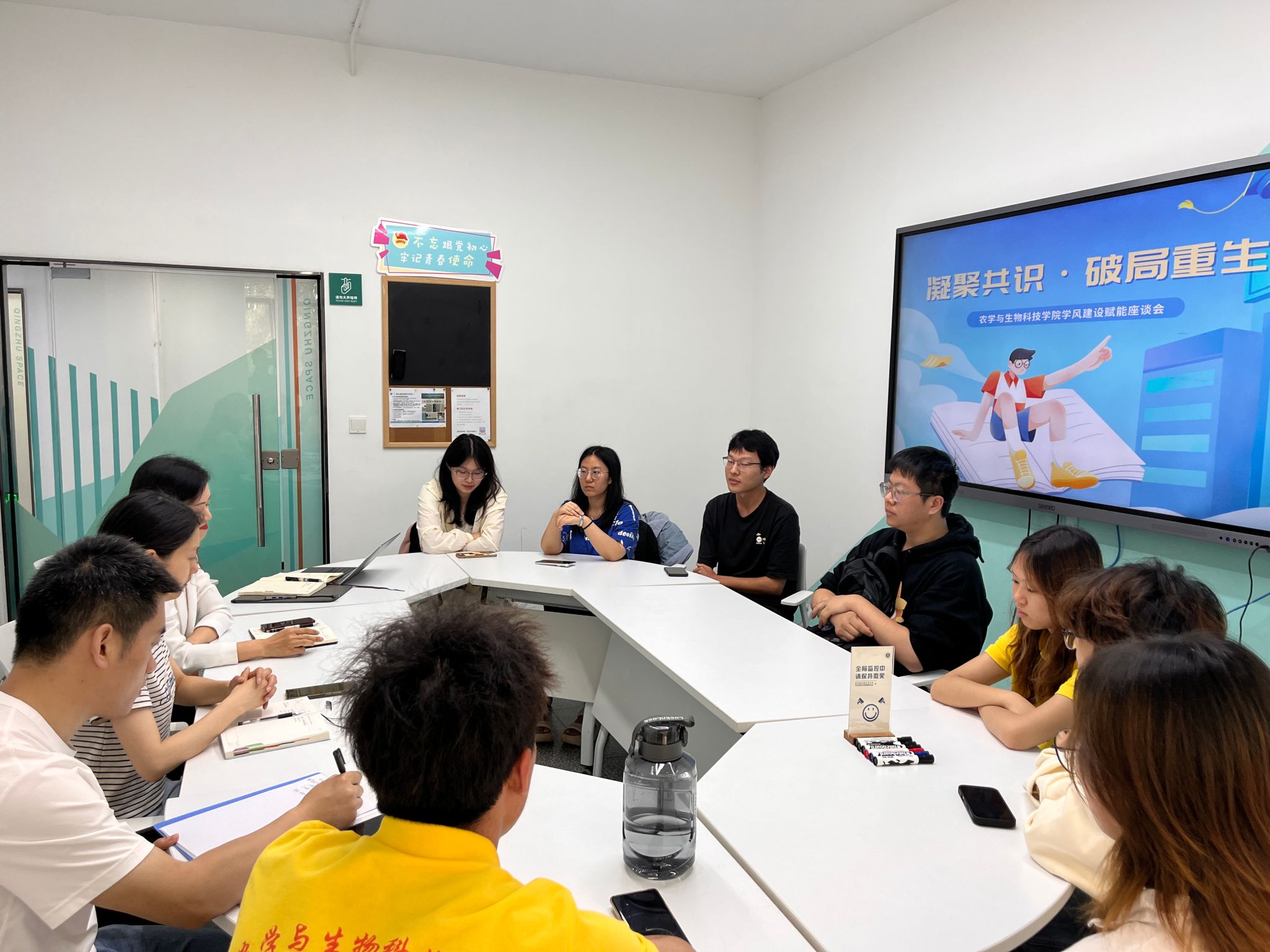 本科2024级在青竹空间举办了学风建设赋能座谈会。学院党委副书记刘秋艳、2024级植科3班班主任王凡龙、共课老师蒋锐、辅导员王皓以及班级班委和寝室长代表,各方围绕班级学风建设展开深入交流,共同为提升学生学习质量出谋划策。