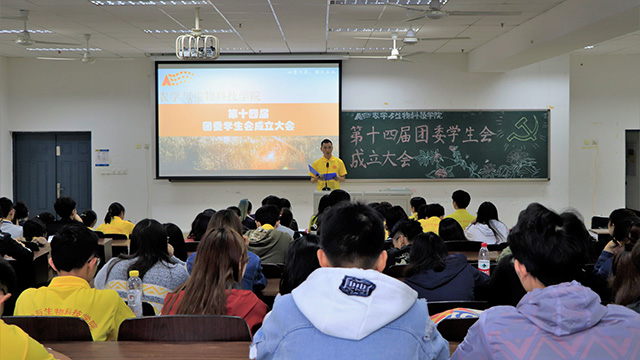 第十四届团委学生会成立大会在35教418室举行学院团委书记许莹竹老师、主席团及各部门干部、新加入团委学生会各部门的干事同学共同参与了此次大会,为增进新一届学生会各部门之间的良好感情,建设学生会的踏实作风打下基础。