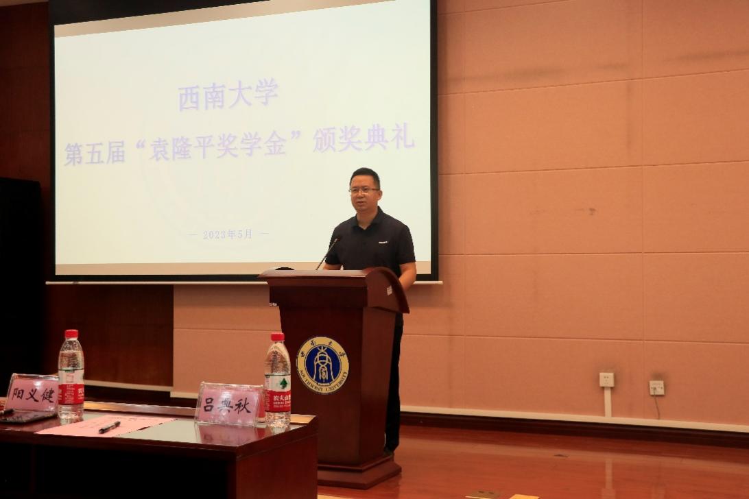 院长吕典秋宣读了第五届“袁隆平奖学金”的表彰决定。农生院党委书记阳义健发表讲话,阳义健书记鼓励同学们积极行动起来,大力弘扬袁隆平精神,把小我融入大我,在乡村振兴中成长成才、建功立业。