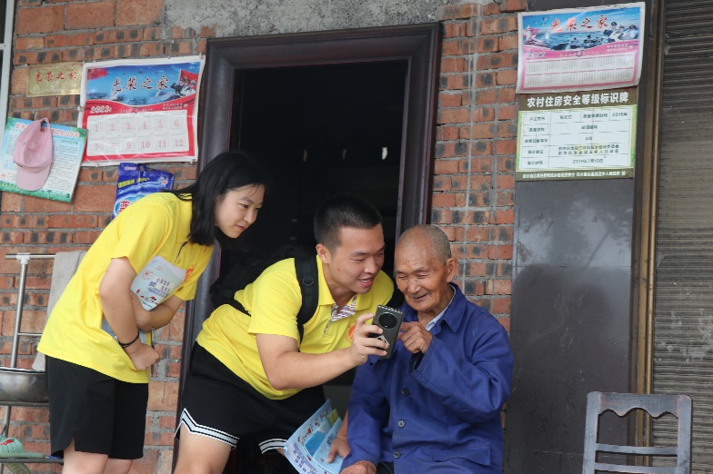 实践团成员在几天时间里走村串户,深入樱桃井村、白果坪村、莲花寺村与村民深入交流。7月8日上午,实践团成员前往润溪乡莲花寺村探望慰问当地革命前辈,在与革命老战士在对话中感悟前辈们的初心与使命,领略平凡中最绚丽的光辉。