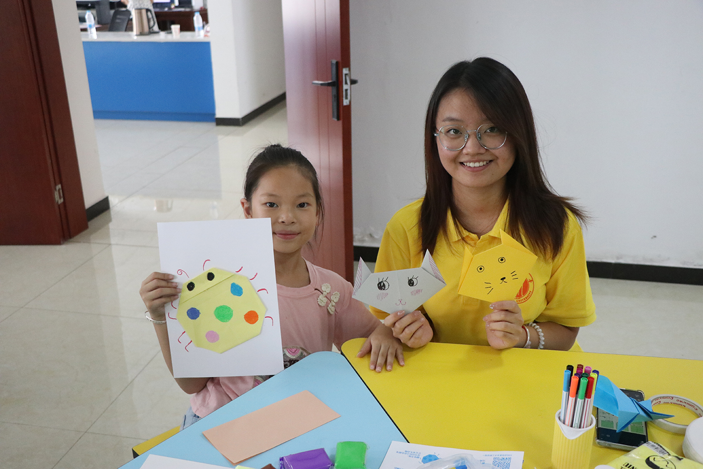 “以美润心”支教小课堂也是此次“三下乡”实践团支教活动的重要组成部分。实践团成员杨子萱同学在课前精心准备了美术手工所需的材料,并将其分发给参与的小朋友们。在她的引导下,小朋友们发挥了他们丰富的想象力,用手中的画笔绘出了一幅幅充满童真和创意的美术作品。这些作品不仅展现了小朋友们的纯真童心,也体现了他们对美的独特的感知和创造力。杨子萱说“看着这些可爱的小朋友们认认真真的学着,我感到很有成就感。”