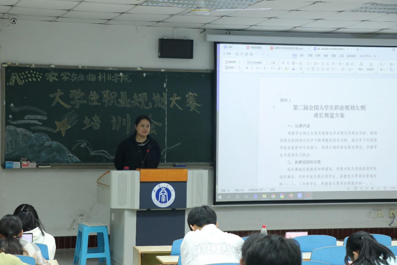 2021级辅导员高荣蓉老师为同学们做培训,全面地为同学们讲解大赛的整体规划和提交的具体细节,内容涵盖了职业规划的重要性、如何进行自我评估、设定职业目标以及规划职业路径等多个方面。