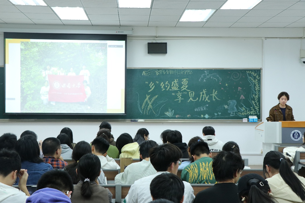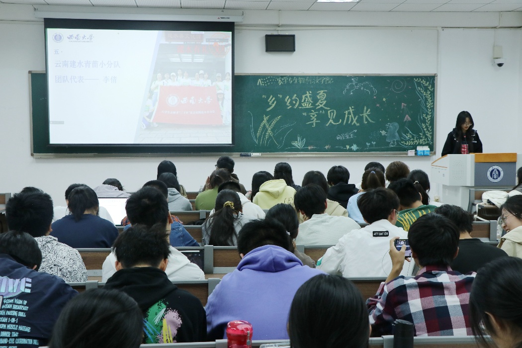于2025年暑期组织1支院级实践团和4支校级小分队,分赴重庆大足、北碚、石柱及云南昭通、建水开展“三下乡”实践,以专业能力赋能乡村发展。为深化育人实效,总结经验,学院于2025年10月23日16:40在33教202教室举办2025年暑期“三下乡”社会实践总结分享会,各实践团队代表和个人分别汇报暑期社会实践开展情况和成效收获。团委书记许莹竹老师、2024级辅导员王皓老师出席会议。