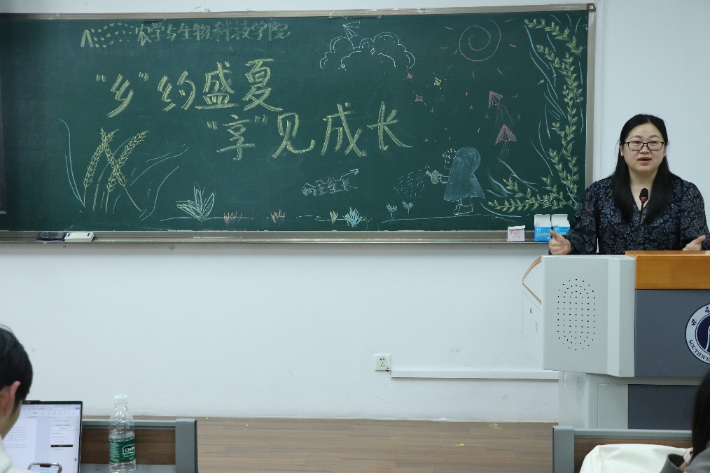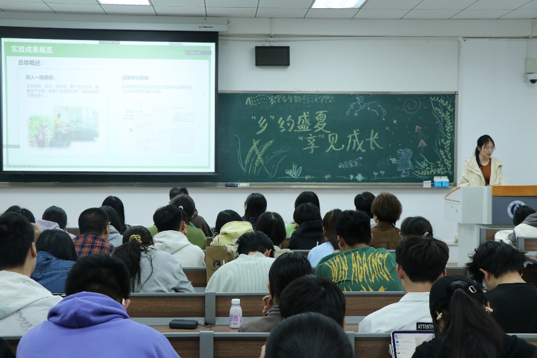 最后,学院团委书记许莹竹在总结讲话中对暑期社会实践活动的开展情况和实践总结会予以高度肯定。一方面,同学们参与热情高,当场聆听学习的同学众多;另一方面,各实践队伍的实践成果丰硕,总结汇报扎实。她动员同学们积极投身实践,以自身专业为依托,在基层实践中精准回应乡村需求,用所学所长为乡村振兴注入青春动能。