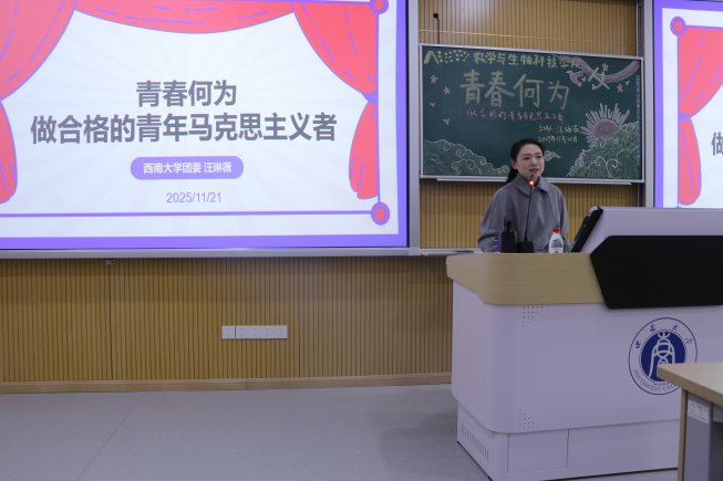 讲座伊始,汪琳薇老师以“何为青春”这一时代之问破题,通过革命烈士陈乔年坚守信仰、原子弹研制科学家群体矢志攻坚、北碚山火中志愿者们团结担当等鲜活案例,生动勾勒出青春最动人的模样。她指出,马克思主义是青年成长成才的强大思想武器,唯有以科学理论为指引,青春征程才能攻坚克难、行稳致远。
