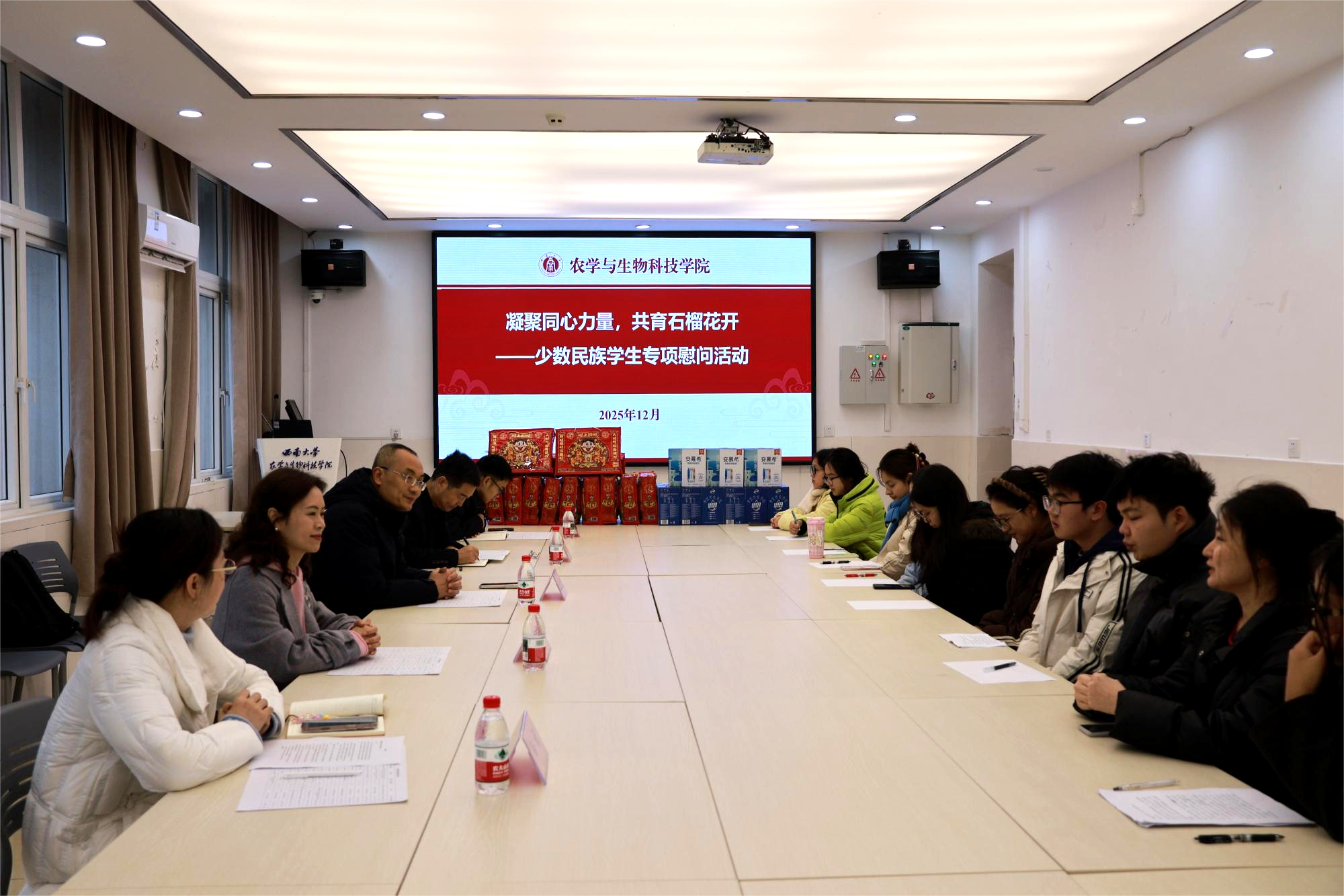 活动尾声,学院领导代表学院向同学们送上元旦祝福与精心准备的慰问礼品。同学们纷纷表示,将牢记学院的殷切期望,勤奋学习、砥砺前行,不断提升综合素质,为促进民族团结、服务社会发展贡献青春力量。